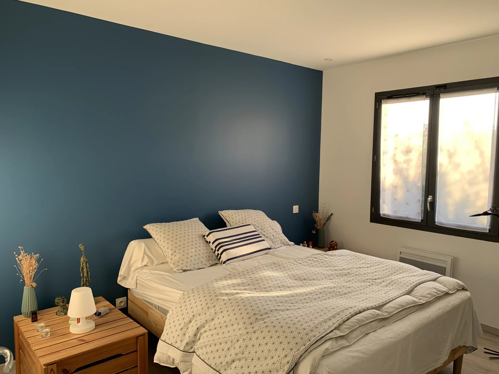 Elle comprend : une entrée avec placard, un séjour lumineux avec cuisine ouverte tout équipée (meubles - plaque induction - four - réfrigérateur - cave à vins, 3 chambres dont 1 avec espace dressing, une salle d'eau, un WC séparé.