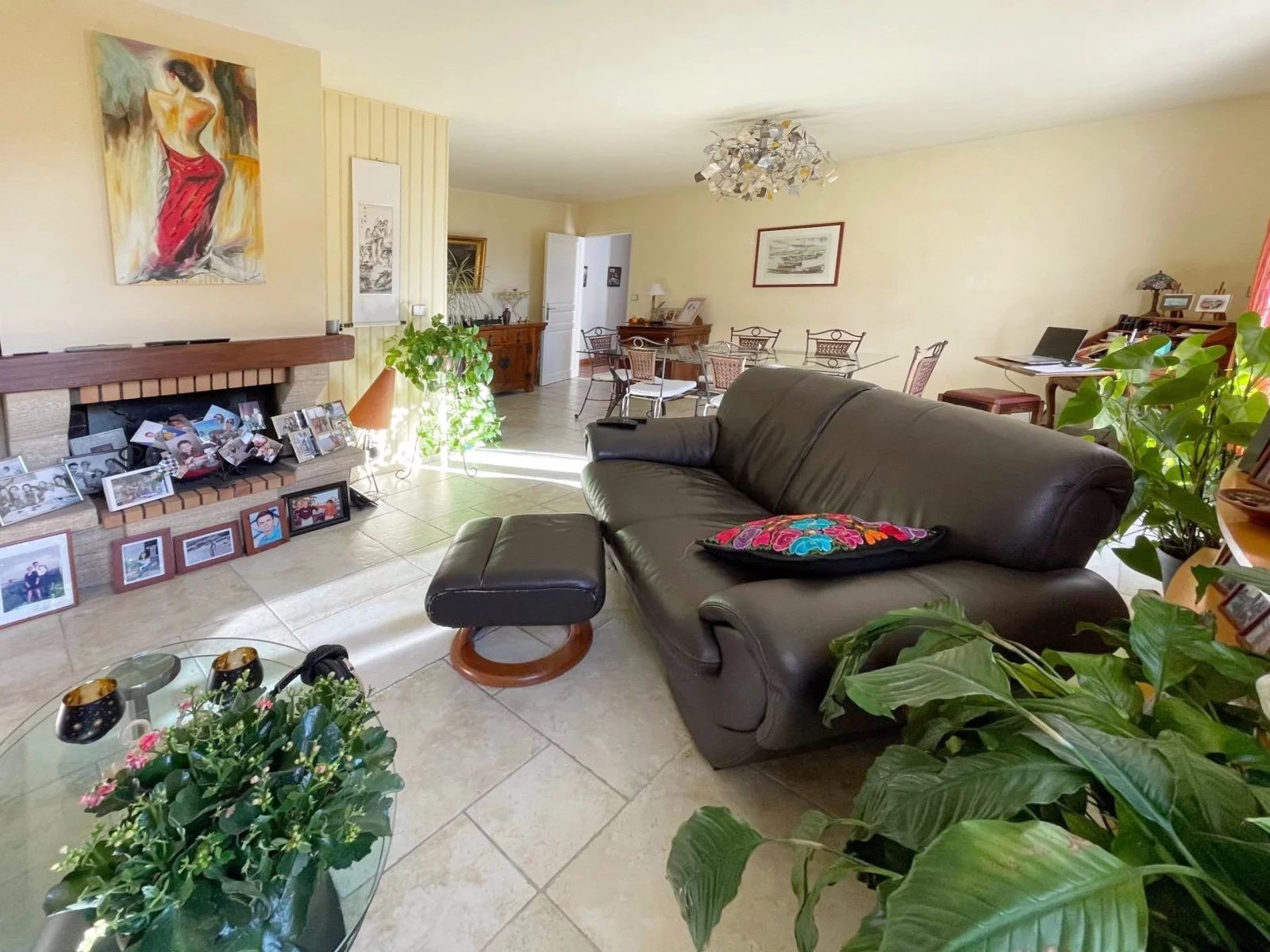 Cette maison parfaitement entretenue et en très bon état propose une entrée ouvrant sur une pièce de vie lumineuse avec sa cheminée, une cuisine fermée, équipée donnant sur une terrasse avec son cellier.